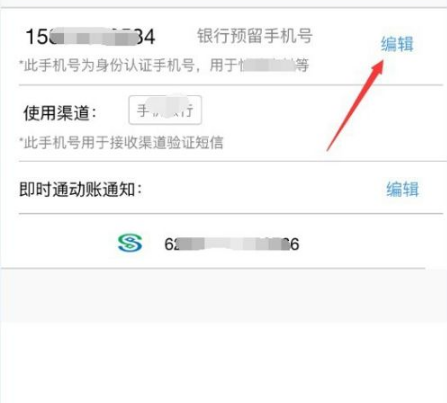 进入我的手机号之后,可以看到你在银行预留的手机号,可作为身份认证,点击后面的“编辑”按钮进行编辑,如图所示。