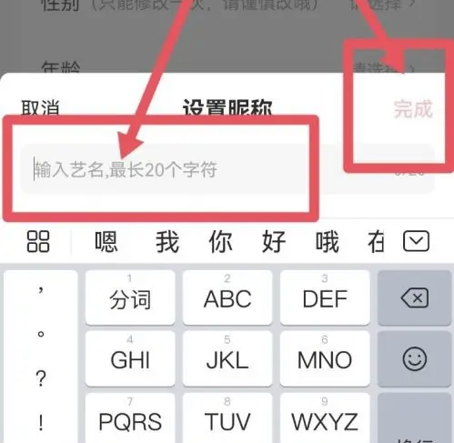 输入昵称,点击【完成】按钮,即可成功修改昵称。