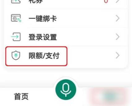 在中国农业银行应用我的窗口,打开【限额/支付】选项。