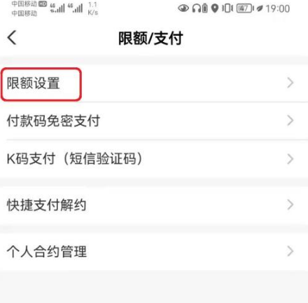 进入限额支付页面,打开【限额设置】选项。
