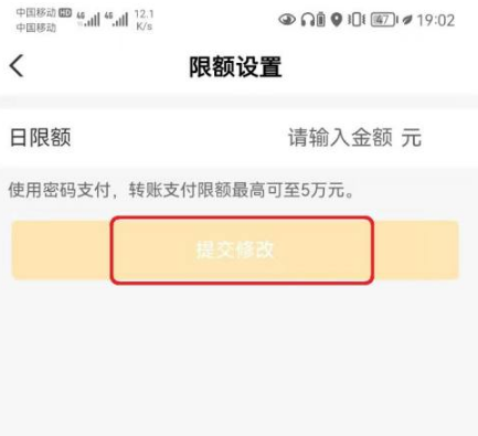 进入限额设置,输入日限额额度后,点击【提交修改】即可。
