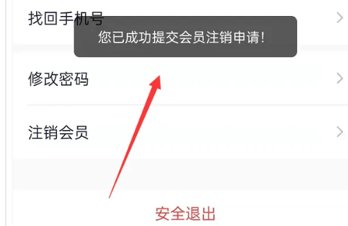 8、此时在出现的页面中可以看到提示消息,该注销申请已提交成功,等待审核通过即可完成注销。