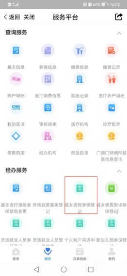 下载并打开“爱南宁”APP,搜索并打开“智慧医保”进入公众号后,点击“办事大厅”,依次选择“服务”、“城乡居民参保登记”,进入城乡居民参保登记申报界面。