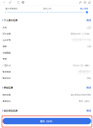 (四)核对参保信息无误后,点击提交即可。