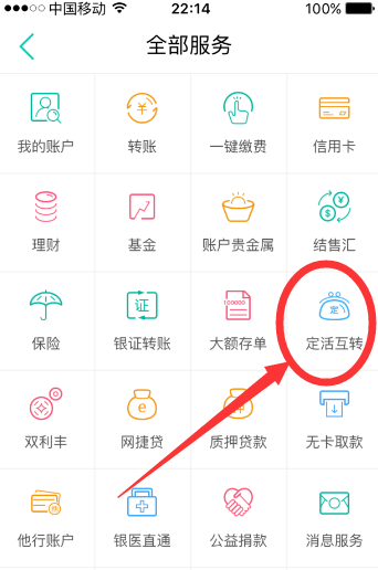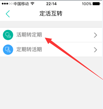 找到定活互转,选择“活期转定期”,点击进入
