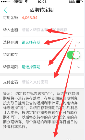 选择你要转入定期的账户