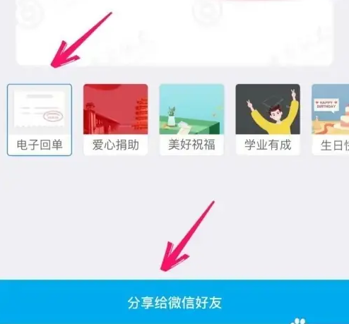 最后在分享信息的页面里选择电子回单后再点击分享给微信好友就可以了。