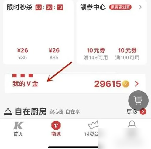 进入后点击打开界面我的V金。