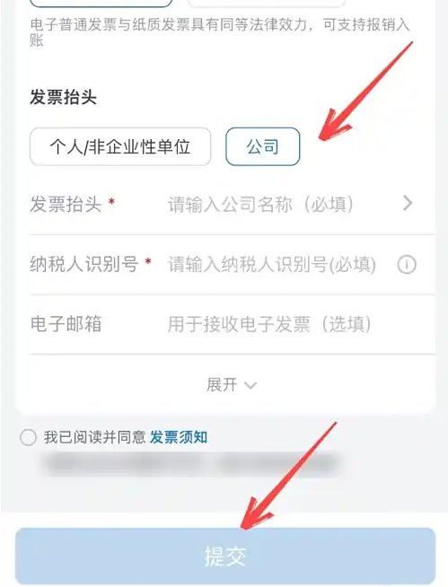 在填写发票的页面里填写开票信息点击提交就可以了。