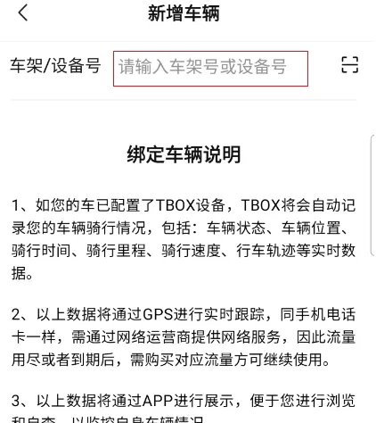 最后一步,进入新增车辆输入车架号点击绑定选项即可。