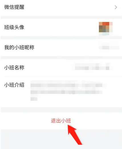 最后点击下方的退出小班的选项即可。