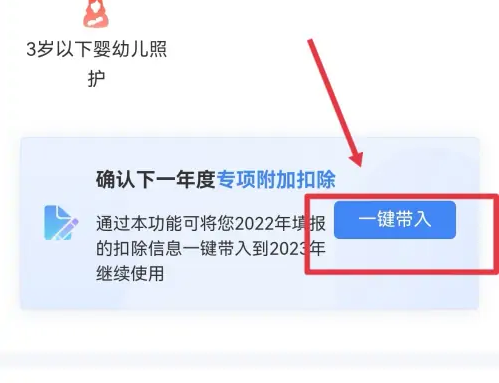 选择【一键带入】,再选择【扣除年度2023】。如下图