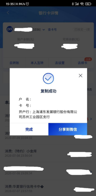 可以看到该借记卡的开户行为“苏州工业园区支行”。