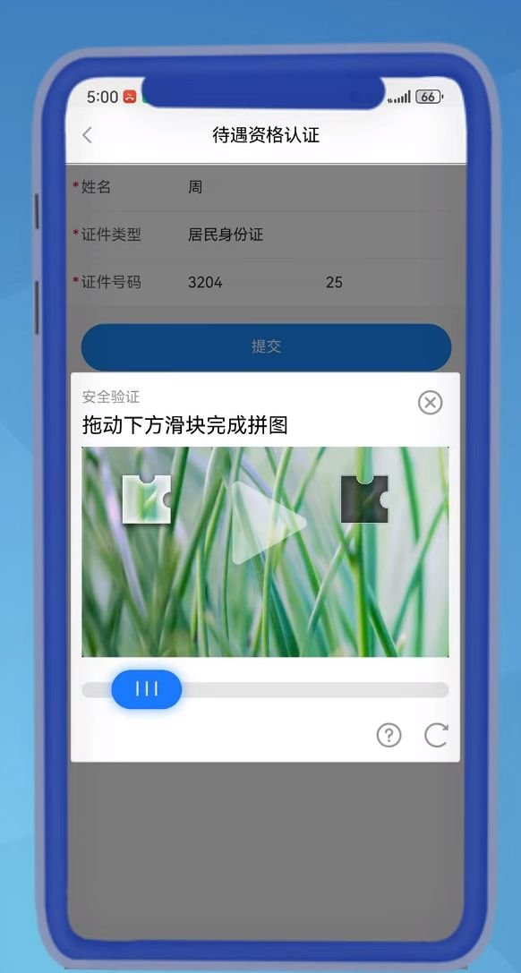 5、输入姓名和身份证号码,点击“提交”,根据提示完成安全验证。