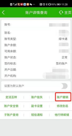 点击其他进入账户详情查询界面,找到【账户撤销】。