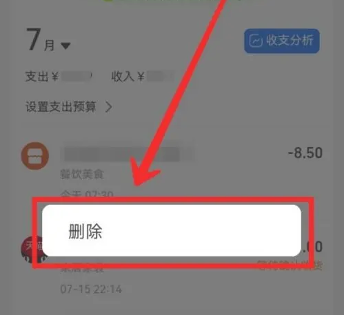 在打开的账单页面,长按需要删除的账单,然后点击【删除】,即可交账单永久删除了。