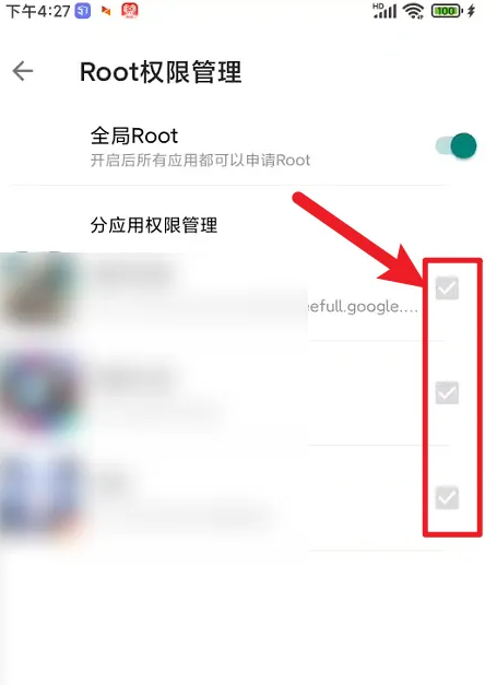 最后在这里勾选需要进行Root的手机应用就可以了。