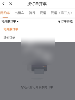 3、在打开的【开具发票】页面中,选择相关服务类型的发票务(顺风车服务不开具发票),这里以网约车为例。