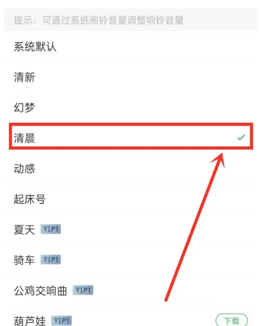 第三步:进入铃声列表,选择闹钟铃声即可。