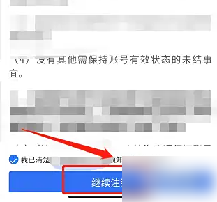 进入账号注销窗口,点击【继续注销】。