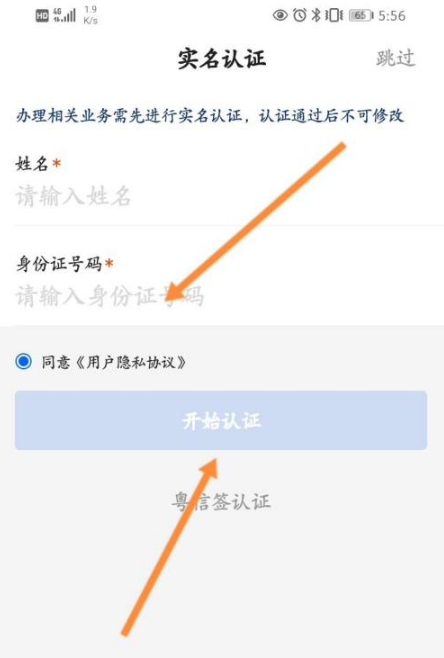 然后输入身份证信息,点击开始认证。