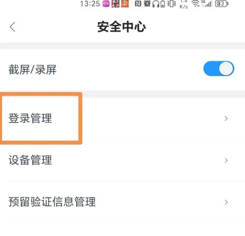 点击页面上的登录管理