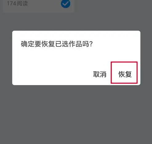 第四步弹出框之后,点击恢复,就成功恢复删除的作品内容了,根据需要使用