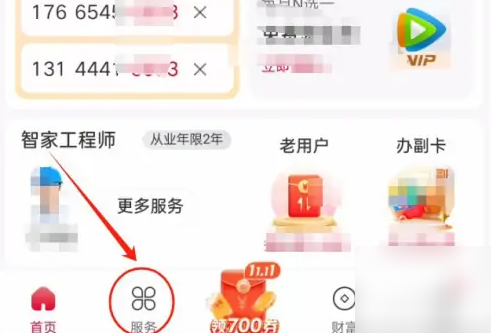 进入首页,选择【服务】,