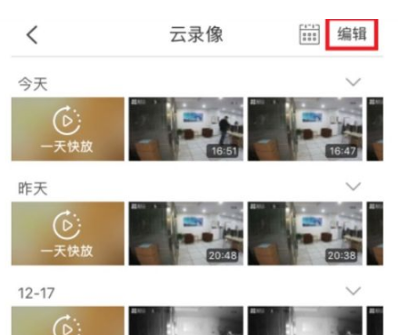 在云录像界面,点击“编辑”按钮,选择对应的录像片段,点击左下角的按钮“下载”即可下载。