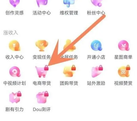 抖音短视频带货权限怎么开 抖音开通带货权限方法 作者:张易川 时间:2026-03-27 10:06:00 来源:快云科技网 首先进入到软件界面,点击【创作者服务中心】进入 进入到界面中点击【全部】进入 最后进入到界面点击【电商带货】即可 本站所有文章、数据、图片均来自互联网,一切版权均归源网站或源作者所有。 如果侵犯了你的权益请来信告知我们删除。 上一篇:湖南智慧人社怎么申请失业金领取 湖南智慧人社申请失业金领取方法 下一篇:抖音短视频如何连续播放 抖音短视频连续播放方法