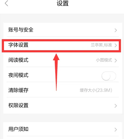 进入设置页面,点击【字体设置】。