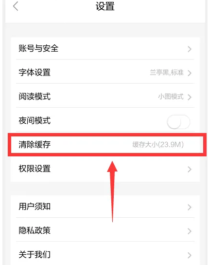 在设置页面,点击【清除缓存】。