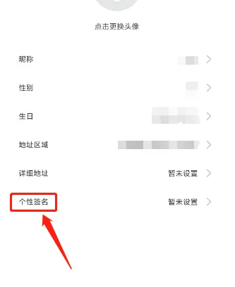 第三步:进入编辑个人信息,点击【个性签名】。