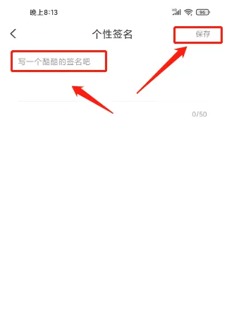 第四步:进入个性签名,输入签名内容,点击【保存】。