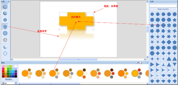 轻松点击图形库,将心仪图形拖拽至设计面板。随心所欲地拉伸、缩放、旋转图形,调用“颜色”“效果”面板,赋予图形绚丽色彩,叠加倒影、发光等奇幻特效。
