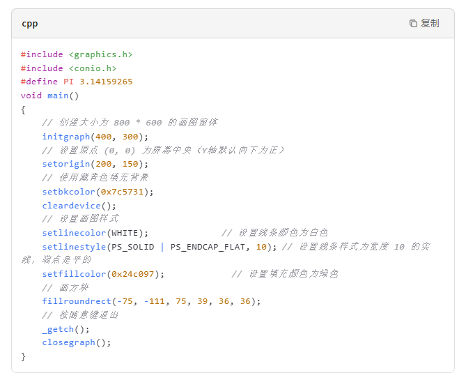 设置绘图属性:通过setbkcolor设置背景颜色,setlinecolor设置线条颜色,setlinestyle设置线条样式,setfillcolor设置填充颜色等。