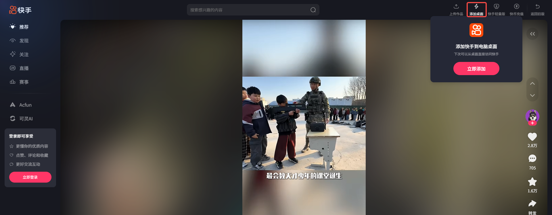 APP 扫码登录:打开手机快手极速版,使用“扫一扫”扫描网页二维码并确认