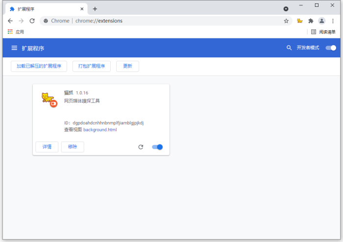 1、下载并安装猫抓插件到浏览器的扩展程序中。
