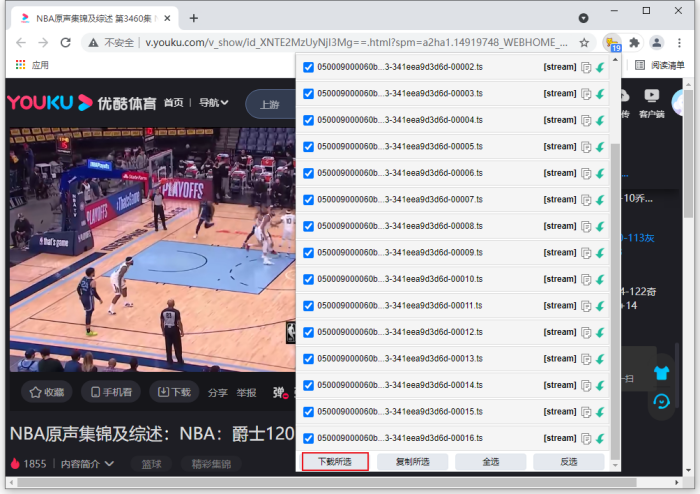 3、我们点击选择需要下载的视频内容,接着点击下方的“下载所选”按钮。