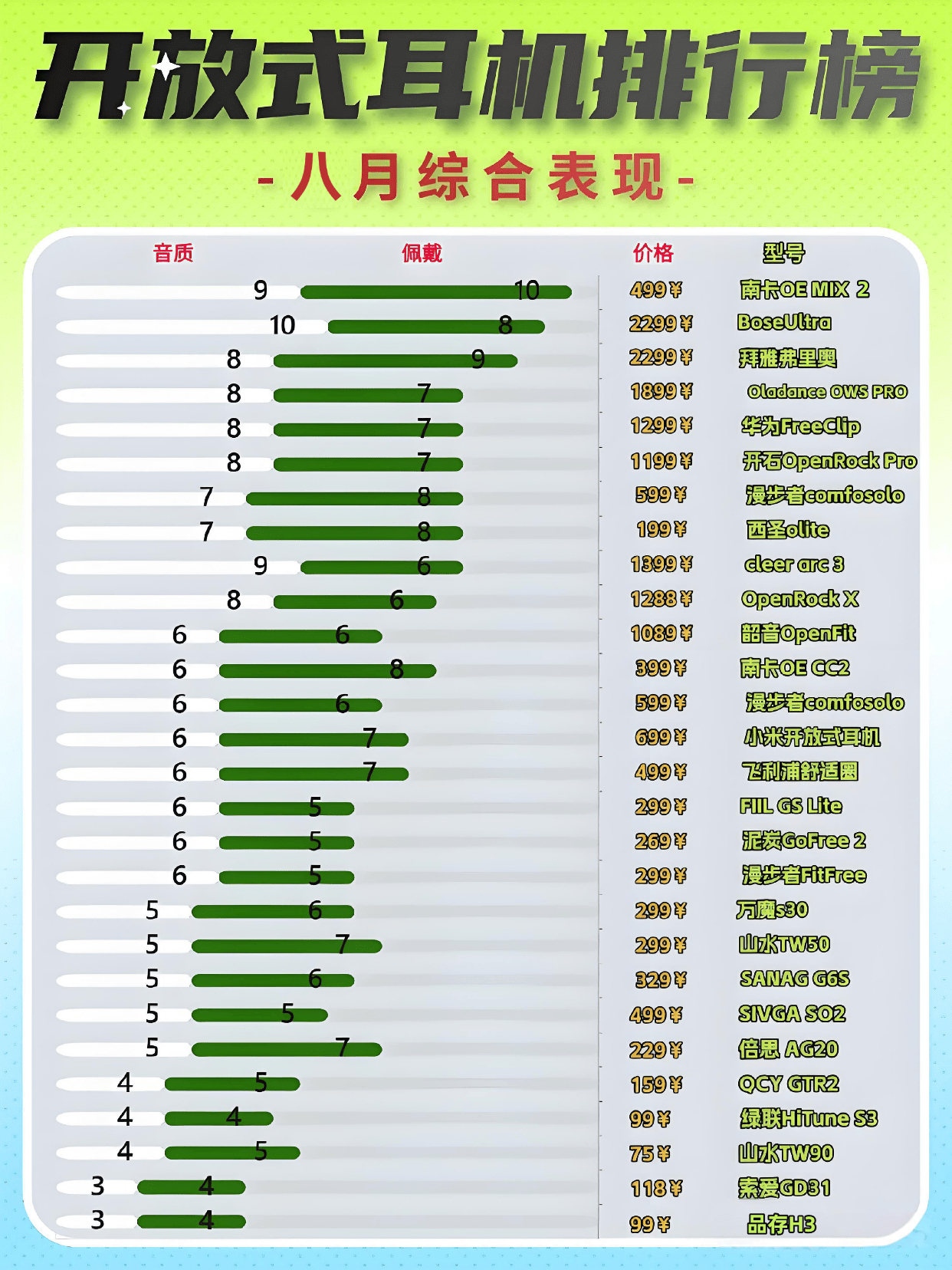 这些耳机各具特色,如绿联HiTune S3的耳夹式设计佩戴轻松透气,骨聆SS900的夹持力度适中不易脱落,JBL SoundGear Sense的通话质量清晰,QCY Crossky GTR的高频表现清晰,以及小米耳机的蓝牙5.3和AI通话降噪算法等。用户可根据个人喜好和需求进行选择。