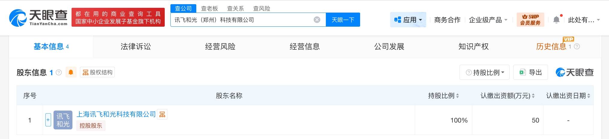 股权结构方面,该公司由上海讯飞和光科技有限公司全资控股,后者为知名人工智能企业科大讯飞的旗下子公司。此次在郑州设立新公司,标志着该集团在中部地区的技术布局进一步深化。